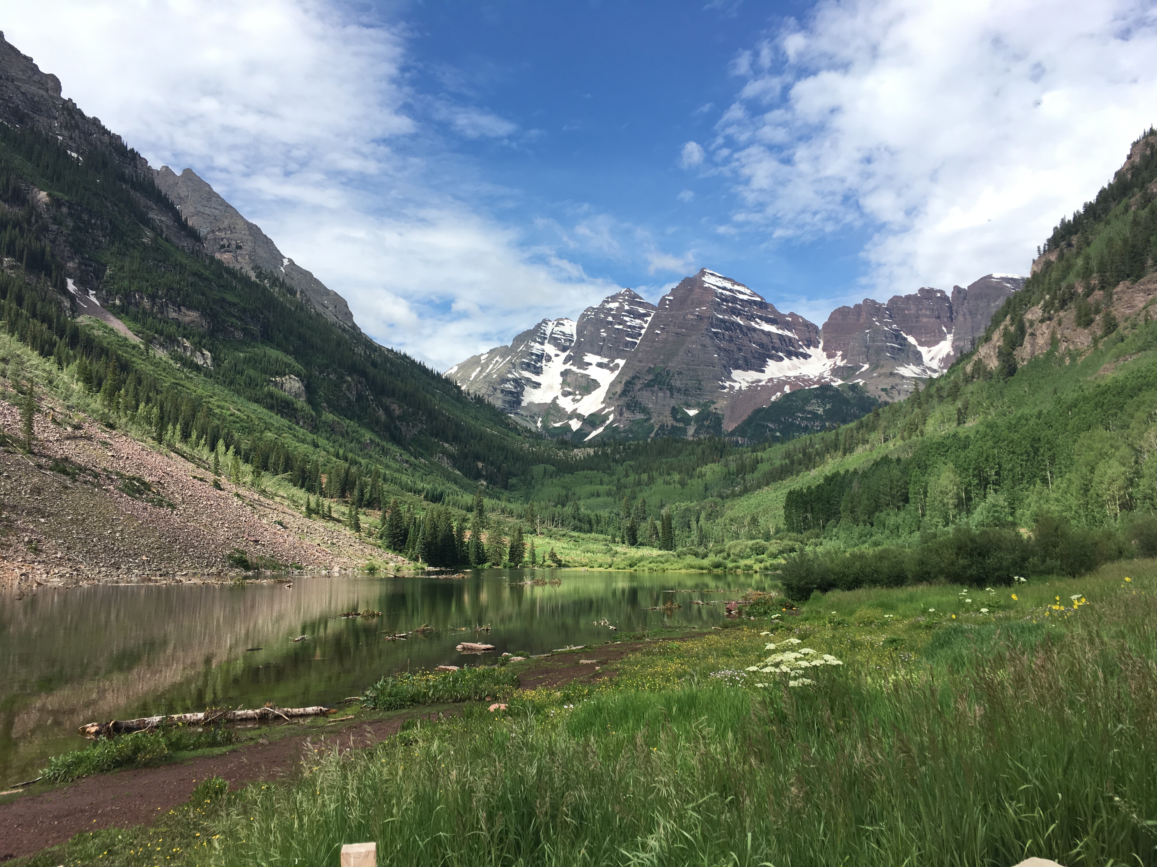 The first week of my adventures was spent with my sister in Colorado. We flew from Gatwick to Denver on Saturday 20th July and spent the week ‘car camping’ (driving between day hikes and campsites). Our first day was largely spent sorting ourselves out and setting ourselves up for the week ahead, and by that, I mean being handed everything on a plate by our wonderful cousin Jess and her overly generous fiancé Mike! We stayed our first night at their house in Erie, sleeping off some of the jet lag, and our second night with them at their Cabin in Granby. On Monday, we left the comfort and luxury of their Granby home and headed on down to Turquois Lake (near Leadville), with our rental car full to the gunnels with the camping equipment Jess and Mike had kindly lent us for the week. Having not booked anything in advance, we decided we would just rock up to a couple of campgrounds and hope one would have a spare site knocking around. Sure enough, the first campground we visited (Baby Doe) had just received a cancellation so we set up our tent on one of their lakeside sites. Like all campgrounds in the region, Baby Doe was incredibly basic whilst simultaneously having everything you need. Each site had a picnic table and fire pit, and each loop of sites had a simple toilet block, and tap with running water. We hit the hay early as on Tuesday, we planned to tackle Mount Elbert, which has an elevation of 14439 feet, making it the highest summit in Colorado. We were walking by 5.15am, head torches on as the sun had not yet risen. Such an early start was necessary to ensure we had summitted and returned back down below the tree line before the early afternoon storms hit. The 12.5 mile trail took us 10.5 hours to complete. It was one of the toughest climbs I have ever done and the sense of achievement in reaching the top was immense. The next morning, we packed up camp and drove the scenic Independence Pass towards Aspen, stopping on our way for a significantly easier, yet no less spectacular, gander along the continental divide. We pitched our tent at Weller campground, on the Aspen side of Independence Pass, before heading out for an afternoon walk up Difficult Creek. Thursday was spent hiking in Maroon Bells, with its stunning red rocks, glistening lakes and beautiful flower meadows, whilst Friday lead us on to our final destination, the Black Canyon of the Gunnison. After setting up camp at the North Rim campground, we hiked up Green Mountain, for jaw-dropping views of the canyon, which provided an incredible contrast to the enormous mountains we had immersed ourselves in over the previous few days. That night we experienced the terrors of camping in a storm and found great comfort in the knowledge that it was our final night under canvas. We broke up the 6-hour drive back to Jess and Mike’s house in Denver with a hike up Vail mountain. It was the first time I had visited a ski resort in the summer and was excited by the buzzing mountain biking scene. Perhaps something to consider trying out in the near future? Overall, week one was a huge success. We hiked some incredible trails and camped in some spectacular locations. It was epic and activity filled, yet it felt like we only scratched the surface of what Colorado has to offer.